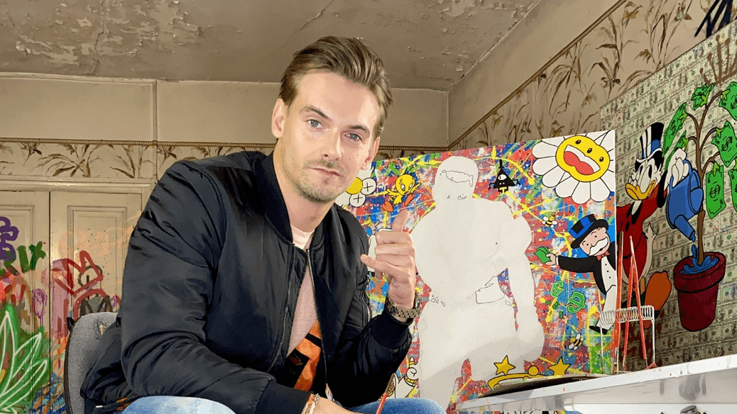 The artist’s work is inspired by references to pop culture and street art, brought together in a colorful and bustling universe.