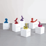 Jeff Koons will be particularly marked by the iconography of advertising and American pop art of the 1980s. Consumer objects and everyday utensils will gain in value in his hands. He will take up the principle of Marcel Duchamp’s “ready made” and elevate them to the status of works of art, starting with vacuum cleaners or basketballs.